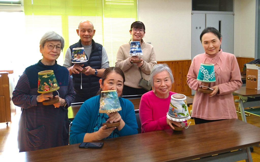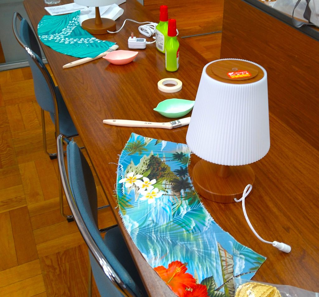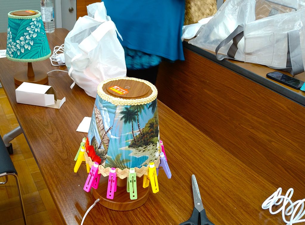 Alohaな雰囲気に囲まれて、皆さん素敵なランプシェードが仕上がりました。